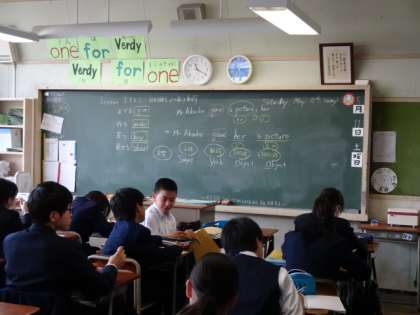 2年3・4組、英語。「〜に…をあげる」などの文型。目的語を2つ取る動詞。