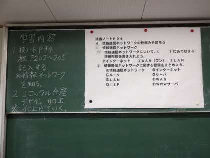 3年4組、技術。「情報ネットワークの仕組みを知る」「プログラミング学習教材を置く台座のデザイン・加工」