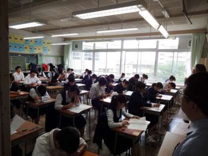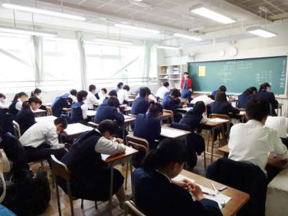 最後のテスト、理科です。今日はこの後6時間目まで授業です。3年生。