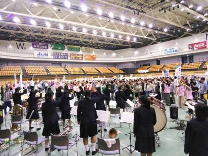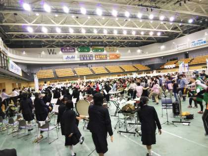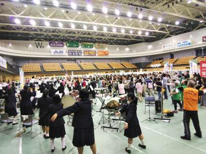 市長あいさつの後は準備体操です。
