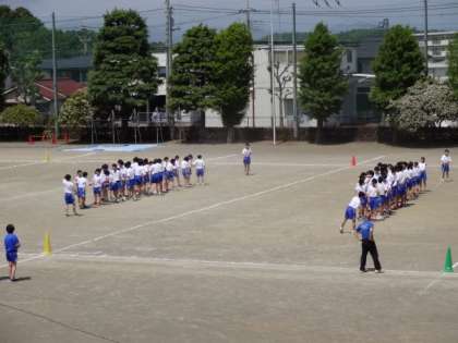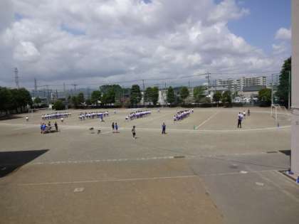 今日から体育大会の練習が始まりました。1・2時間目は2年生の学年練習です。これは大縄跳びの練習風景です。