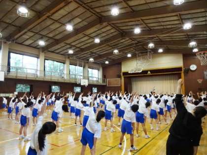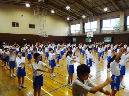 生憎の雨でしたが本番まで後11日。学年練習は行われます。1年生はラジオ体操の練習です。本番ではきれいな準備体操がみられることでしょう。