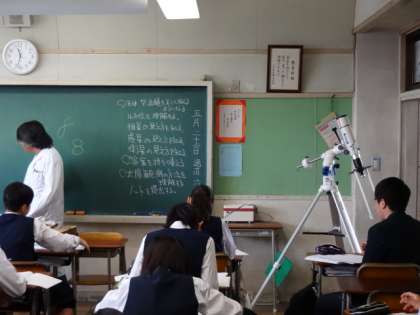 3年4組、理科。天体望遠鏡を正しく扱えるようになる。太陽観測の方法を理解する。答案を持ち帰る。