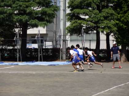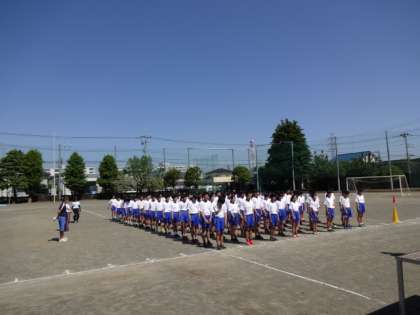 1・2時間目の2年生の学年練習です。ラジオ体操の後はクラス対抗リレーです。