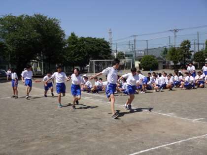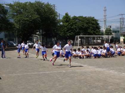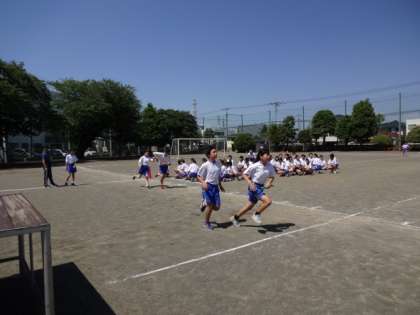 1・2時間目の2年生の学年練習です。ラジオ体操の後はクラス対抗リレーです。