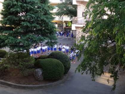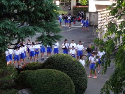 バドミントン部が部活動の時間に元気いっぱい校歌を歌っていました!うれしいですね。母校となる学校の校歌です。誇りをもって歌ってください。