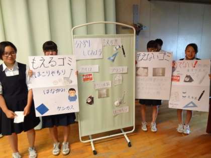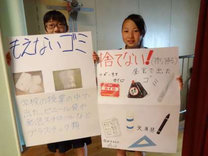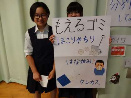 美化委員会が全校生徒に話した「ごみの分別について」で使用した手作りのポスターです。