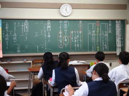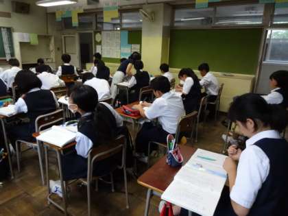 1年4組、国語。「筆者のものの見方や考え方を捉える」「問いと答えの関係に着目する」