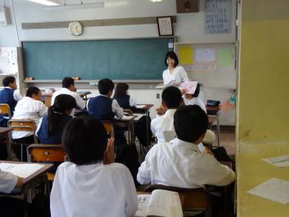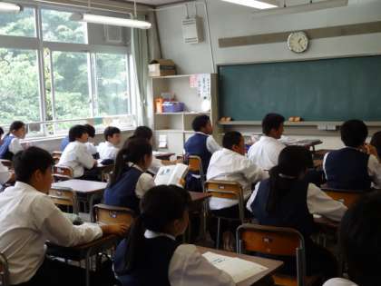 1年1組、道徳。「いじり」と「いじめ」について考え、話し合う。