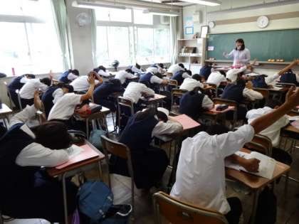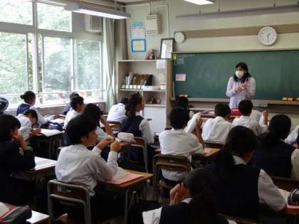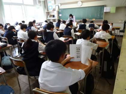 1年4組、道徳。「いじり」と「いじめ」について考え、話し合う。