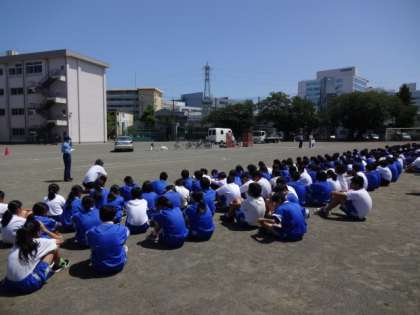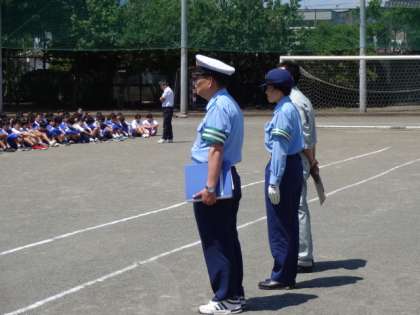 スタントマンによる交通事故疑似体験を取り入れた、スケアード・ストレート的手法による交通安全教室です。先ず、八王子警察署の方からお話がありました。
