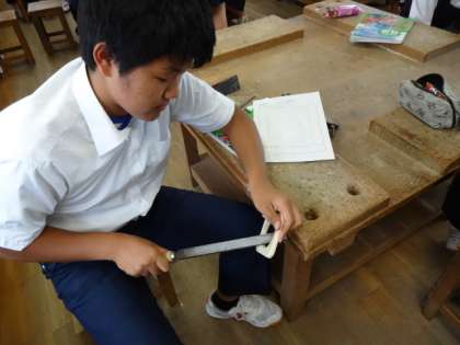 3年1組、技術「プログラミング学習教材を置く台座のデザイン・加工」だいぶできてきました。