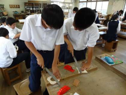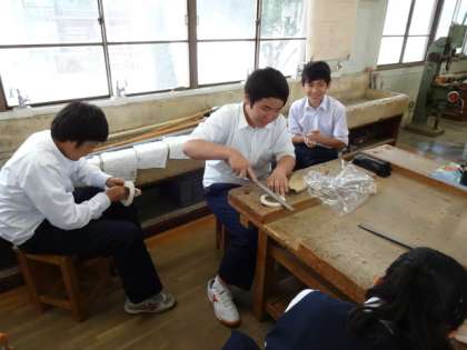 3年1組、技術「プログラミング学習教材を置く台座のデザイン・加工」だいぶできてきました。