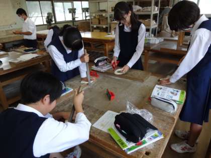 3年1組、技術「プログラミング学習教材を置く台座のデザイン・加工」だいぶできてきました。