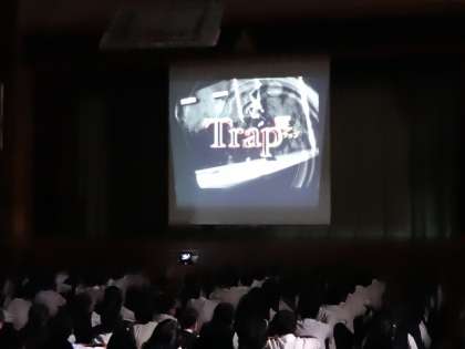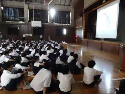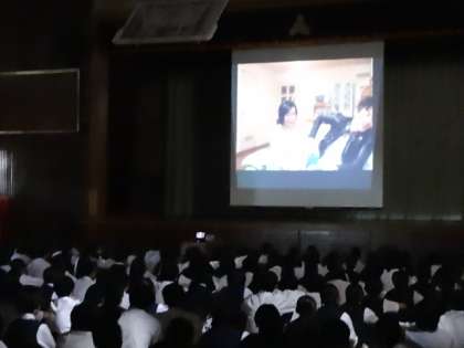 先ず、薬物乱用防止のDVDを全校生徒で見ました。