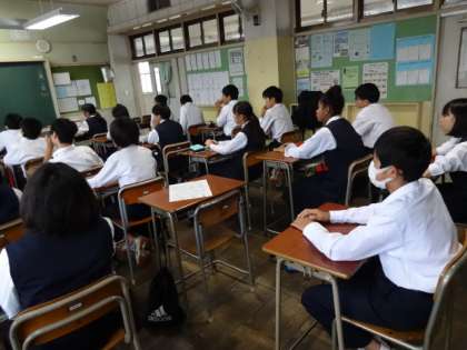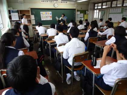 2年4組、ブックトーク。日本十進分類表に従って、司書の方がおすすめの本を紹介してくださいました。
