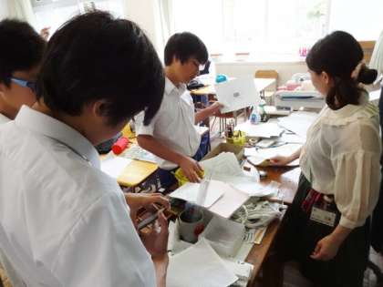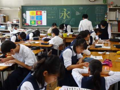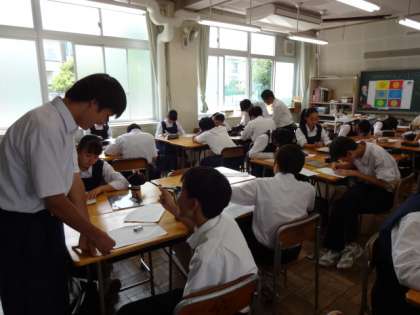 2年3組、美術。消失点に気をつけて家具を描いていこう!