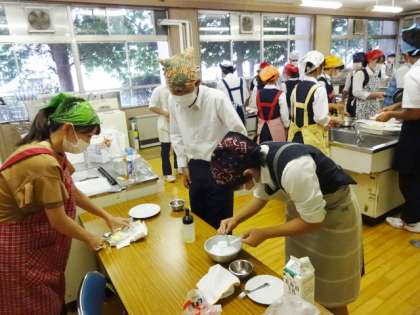 3年1組、家庭科。調理実習。幼児のおやつを作ろう「バナナケーキ」。
