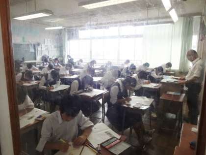 今日から期末考査です。3時間目美術の様子です。2年3組。