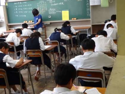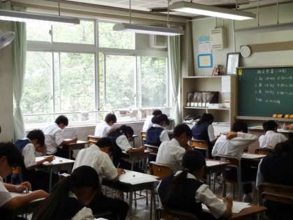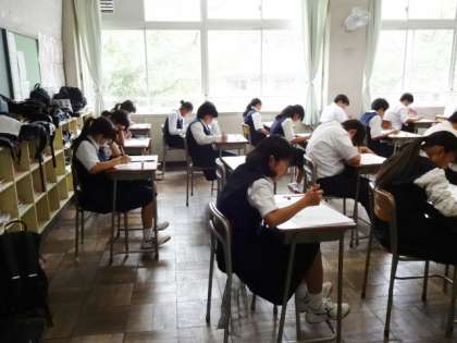 今日から期末考査です。3時間目美術の様子です。1年4組。