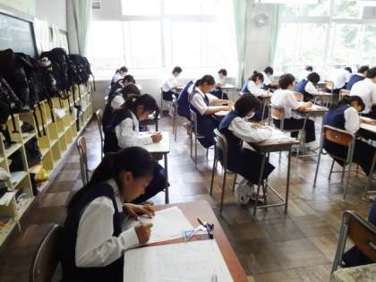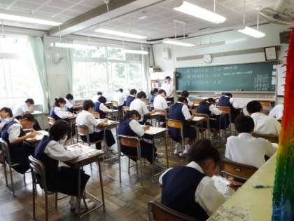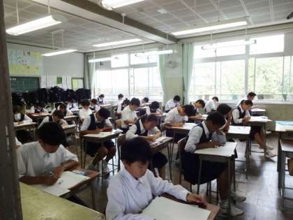 今日は期末考査2日目です。1時間目の数学の様子です。1年1組。