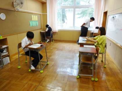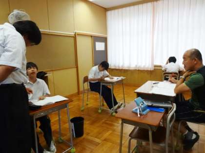 今日は期末考査2日目です。1時間目の数学の様子です。1年7組、2年7組、3年7組。