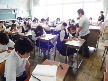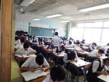 今日は期末考査2日目です。1時間目の数学の様子です。2年3組。