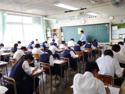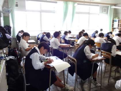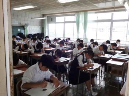 今日は期末考査2日目です。1時間目の数学の様子です。2年4組。