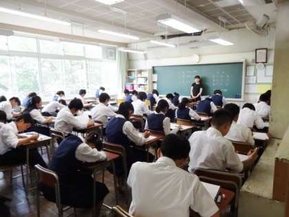 今日は期末考査2日目です。1時間目の数学の様子です。3年4組。