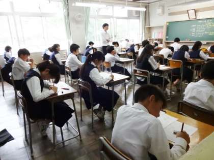 期末考査最終日です。1時間目の理科の様子です。1年4組。