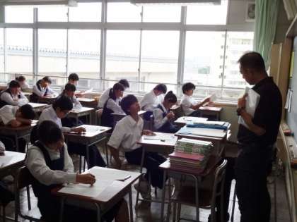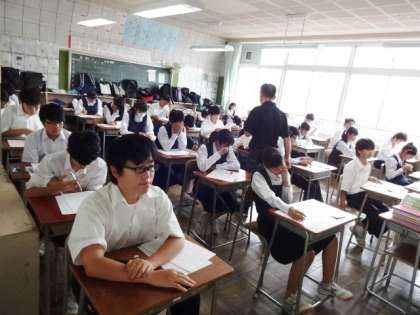 期末考査最終日です。2時間目の保健体育の様子です。2年1組。