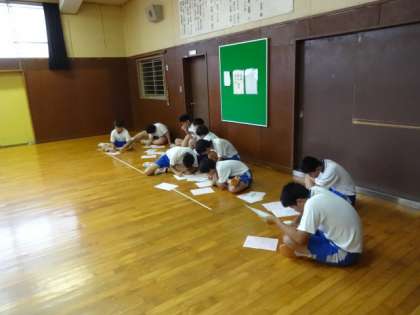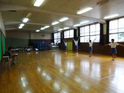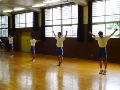 3年1・2組、体育男子。ラジオ体操のテストです。