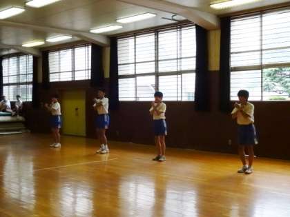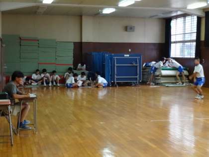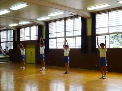 3年1・2組、体育男子。ラジオ体操のテストです。