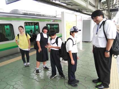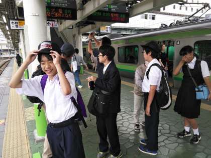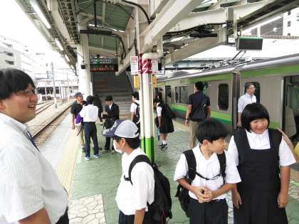 今日は7組が校外学習で横浜に行きます。今、八王子駅で横浜線を待っています。