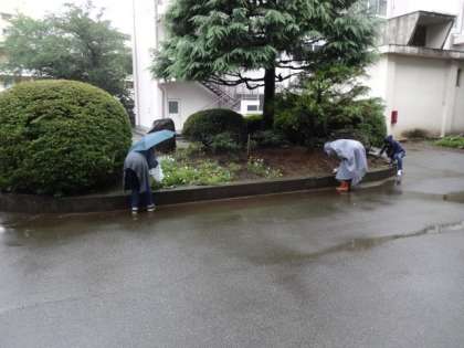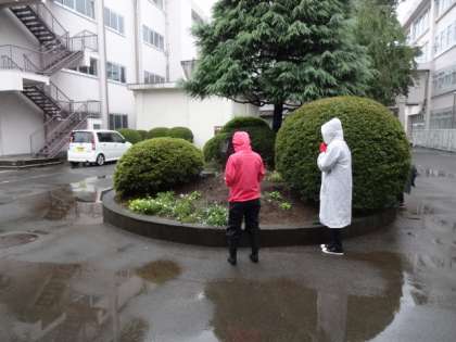 雨のためにクリーン活動は中止になりましたが、校外生活委員の方々が、花壇の植え替えを行ってくださいました。とてもきれいになりました。ありがとうございました。手伝ってくれた生徒のみなさん。とても助かりましたよ。