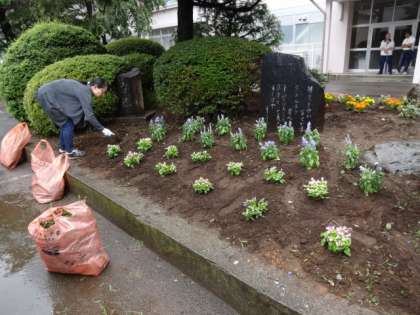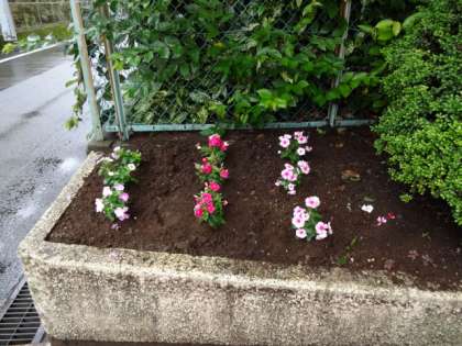 雨のためにクリーン活動は中止になりましたが、校外生活委員の方々が、花壇の植え替えを行ってくださいました。とてもきれいになりました。ありがとうございました。手伝ってくれた生徒のみなさん。とても助かりましたよ。