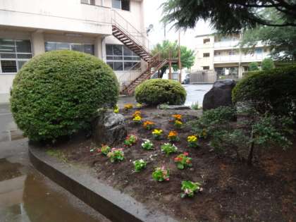 雨のためにクリーン活動は中止になりましたが、校外生活委員の方々が、花壇の植え替えを行ってくださいました。とてもきれいになりました。ありがとうございました。手伝ってくれた生徒のみなさん。とても助かりましたよ。