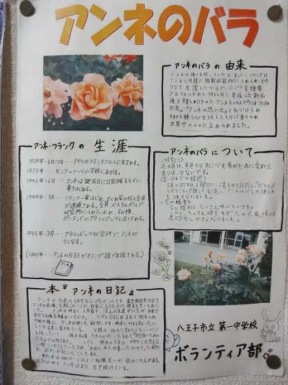 平成16年(2004年)に三鷹五中アンネのバラボランティア部との交流会でいただいたバラが、今年も咲きました。