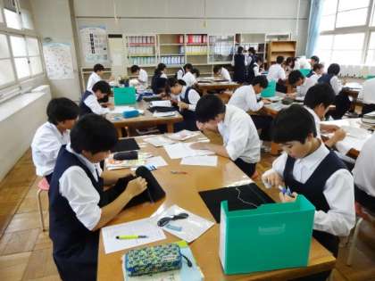 2年3組、家庭科。「スウェーデン刺しゅうを進めよう」