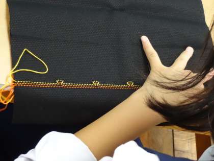 2年3組、家庭科。「スウェーデン刺しゅうを進めよう」男子も結構器用に刺しゅうをしています。