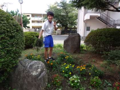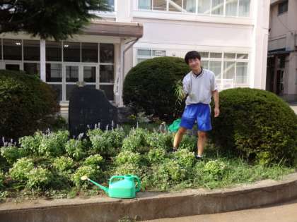 暑い中、ボランティア部の生徒が、花壇の草取りに来てくれています。ありがとう。