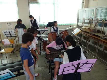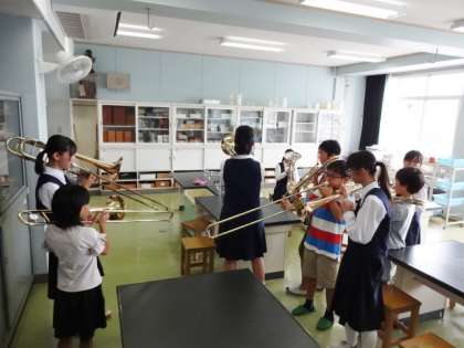 吹奏楽部が大和田小学校のサマースクールに参加しました。演奏をしたり楽器体験をさせたり大活躍でした。