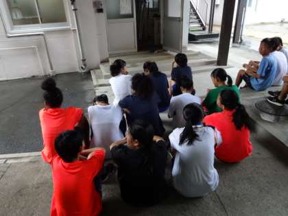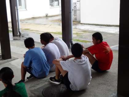 陸上部。雨に濡れながら練習していました。陸上競技は雨天でも行われます。