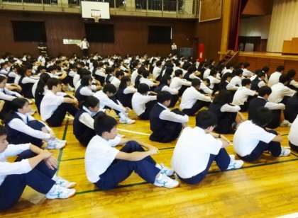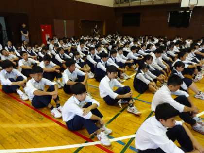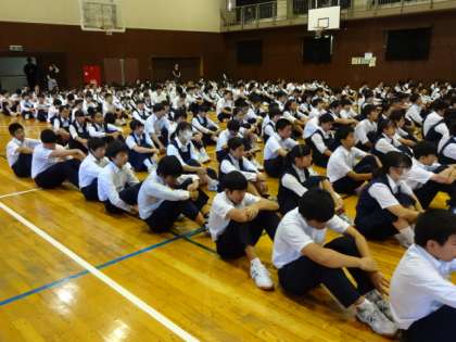 校長先生が、2日の臨時朝礼の話の続きと10月17日の合唱コンクールに対する取り組みについて話をしました。