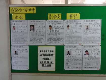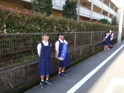 12日の生徒会役員選挙に向けて、朝の選挙活動です。
