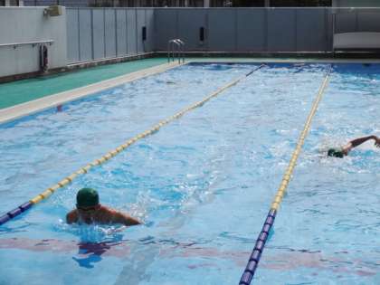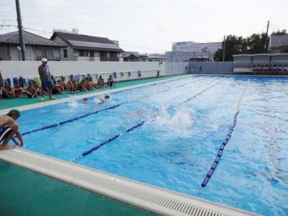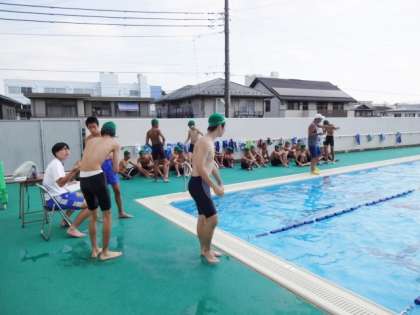 2年3・4組、体育男子。50Mタイムの計測をしていました。
