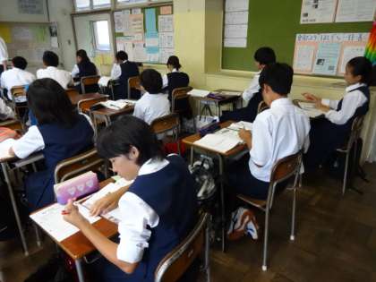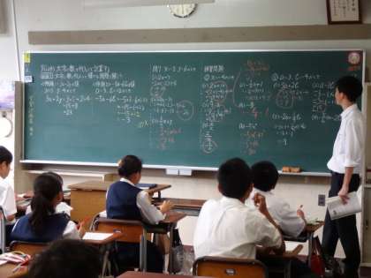 1年1組、数学。「文字に数を代入して様々な式を解こう」