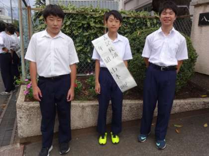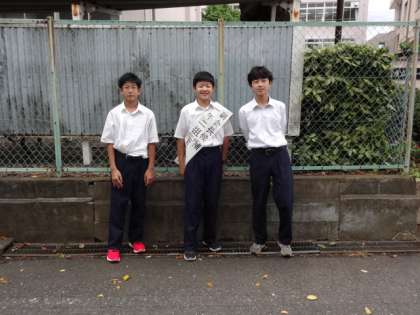 今日の6時間目に生徒会役員選挙が行われます。今朝は最後の選挙活動のあいさつです。