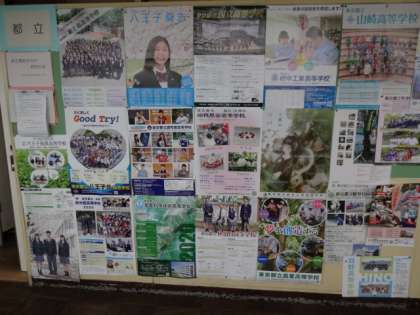 3年生の廊下に貼られた上級学校のポスターが一杯です。これから説明会や見学会がたくさん開かれます。
