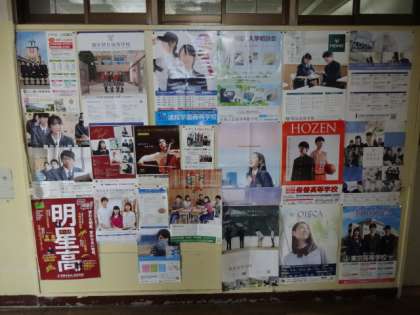3年生の廊下に貼られた上級学校のポスターが一杯です。これから説明会や見学会がたくさん開かれます。